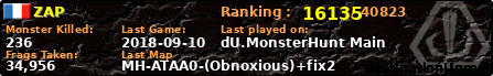 | Server | Map | LastGame | Score | Teamscore | Monsterleft | Deaths | Suicides | TKs | Distance | Playtime | |