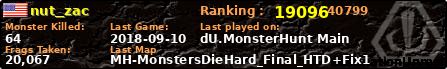 | Server | Map | LastGame | Score | Teamscore | Monsterleft | Deaths | Suicides | TKs | Distance | Playtime | |