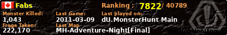 Fabs | | PlayerID: | 3428 | | Overall MHT: | 222,170 | | Overall Deaths: | 165 | | Overall Suicides: | 55 | | Overall TeamKills: | 0 | | Overall Distance traveled: | 84km | | Overall Time Spend on Server: | 00days 06h 39m 20s | | Maps Played: | 17 | | Firstgame: | 2011-03-05 02:20:20 | | LastGame: | 2011-03-09 00:14:17 | | Player Ranking Place: | 7822 | | Used Playernames: | Fabs Tudor