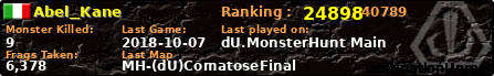 | Server | Map | LastGame | Score | Teamscore | Monsterleft | Deaths | Suicides | TKs | Distance | Playtime | |