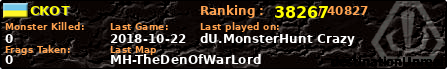 | Server | Map | LastGame | Score | Teamscore | Monsterleft | Deaths | Suicides | TKs | Distance | Playtime | |