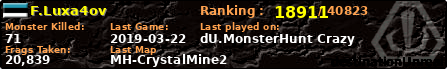 | Server | Map | LastGame | Score | Teamscore | Monsterleft | Deaths | Suicides | TKs | Distance | Playtime | |