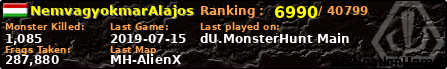 | Server | Map | LastGame | Score | Teamscore | Monsterleft | Deaths | Suicides | TKs | Distance | Playtime | |