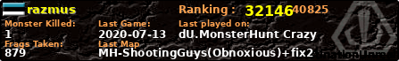 | Server | Map | LastGame | Score | Teamscore | Monsterleft | Deaths | Suicides | TKs | Distance | Playtime | |