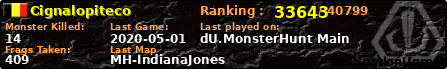 | Server | Map | LastGame | Score | Teamscore | Monsterleft | Deaths | Suicides | TKs | Distance | Playtime | |