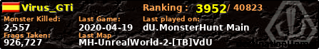 Virus_GTi | | PlayerID: | 37111 | | Overall MHT: | 926,727 | | Overall Deaths: | 494 | | Overall Suicides: | 0 | | Overall TeamKills: | 1 | | Overall Distance traveled: | 374km | | Overall Time Spend on Server: | 01days 02h 14m 08s | | Maps Played: | 70 | | Firstgame: | 2020-04-12 21:34:31 | | LastGame: | 2020-04-19 06:40:45 | | Player Ranking Place: | 3952 | | Used Playernames: | Virus_GTi