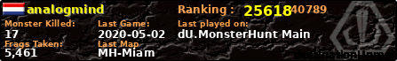 | Server | Map | LastGame | Score | Teamscore | Monsterleft | Deaths | Suicides | TKs | Distance | Playtime | |