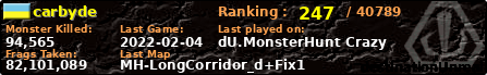 carbyde | | PlayerID: | 37792 | | Overall MHT: | 82,101,089 | | Overall Deaths: | 1015 | | Overall Suicides: | 30 | | Overall TeamKills: | 1 | | Overall Distance traveled: | 1,371km | | Overall Time Spend on Server: | 06days 19h 44m 43s | | Maps Played: | 465 | | Firstgame: | 2020-07-06 12:45:51 | | LastGame: | 2022-02-04 18:13:38 | | Player Ranking Place: | 247 | | Used Playernames: | carbyde
