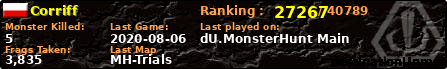| Server | Map | LastGame | Score | Teamscore | Monsterleft | Deaths | Suicides | TKs | Distance | Playtime | |