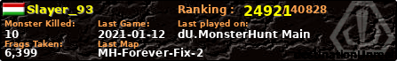 | Server | Map | LastGame | Score | Teamscore | Monsterleft | Deaths | Suicides | TKs | Distance | Playtime | |