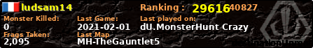 | Server | Map | LastGame | Score | Teamscore | Monsterleft | Deaths | Suicides | TKs | Distance | Playtime | |