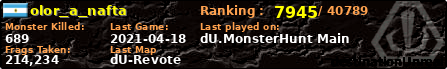 | Server | Map | LastGame | Score | Teamscore | Monsterleft | Deaths | Suicides | TKs | Distance | Playtime | |