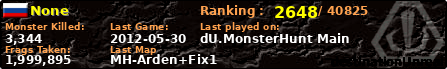None | | PlayerID: | 3918 | | Overall MHT: | 1,999,895 | | Overall Deaths: | 254 | | Overall Suicides: | 4 | | Overall TeamKills: | 3 | | Overall Distance traveled: | 287km | | Overall Time Spend on Server: | 00days 22h 55m 36s | | Maps Played: | 86 | | Firstgame: | 2011-03-31 16:29:40 | | LastGame: | 2012-05-30 22:02:01 | | Player Ranking Place: | 2647 | | Used Playernames: | None QJoe