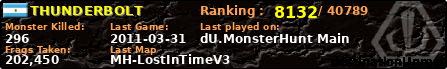 | Server | Map | LastGame | Score | Teamscore | Monsterleft | Deaths | Suicides | TKs | Distance | Playtime | |