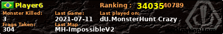 | Server | Map | LastGame | Score | Teamscore | Monsterleft | Deaths | Suicides | TKs | Distance | Playtime | |
