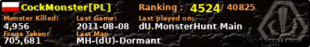 CockMonster[PL] | | PlayerID: | 4024 | | Overall MHT: | 705,681 | | Overall Deaths: | 742 | | Overall Suicides: | 15 | | Overall TeamKills: | 15 | | Overall Distance traveled: | 324km | | Overall Time Spend on Server: | 00days 21h 36m 04s | | Maps Played: | 74 | | Firstgame: | 2011-04-08 16:27:34 | | LastGame: | 2011-08-08 17:07:22 | | Player Ranking Place: | 4524 | | Used Playernames: | CockMonster[PL] CockMonster