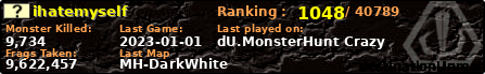 ihatemyself | | PlayerID: | 40400 | | Overall MHT: | 9,622,457 | | Overall Deaths: | 63 | | Overall Suicides: | 1 | | Overall TeamKills: | 0 | | Overall Distance traveled: | 183km | | Overall Time Spend on Server: | 00days 15h 24m 18s | | Maps Played: | 53 | | Firstgame: | 2022-10-24 09:08:07 | | LastGame: | 2023-01-01 14:35:35 | | Player Ranking Place: | 1048 | | Used Playernames: | ihatemyself GuilleVGX Ahly -{T3uzz}-