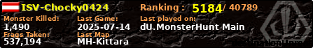 ![]() | MH-GodzReturn++ | 2025-07-02 22:28:10 | 62,195 | 65898 | 28 | 32 | 8 | 0 | 24,13km | 01:44:28 |