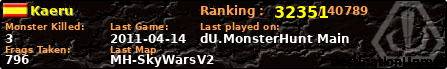 | Server | Map | LastGame | Score | Teamscore | Monsterleft | Deaths | Suicides | TKs | Distance | Playtime | |