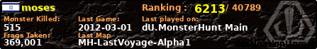 | Server | Map | LastGame | Score | Teamscore | Monsterleft | Deaths | Suicides | TKs | Distance | Playtime | |