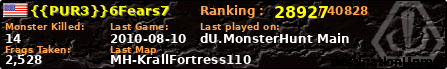 | Server | Map | LastGame | Score | Teamscore | Monsterleft | Deaths | Suicides | TKs | Distance | Playtime | |