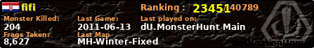| Server | Map | LastGame | Score | Teamscore | Monsterleft | Deaths | Suicides | TKs | Distance | Playtime | |