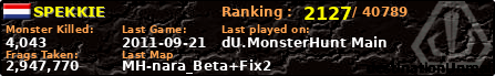 SPEKKIE | | PlayerID: | 5285 | | Overall MHT: | 2,947,770 | | Overall Deaths: | 227 | | Overall Suicides: | 6 | | Overall TeamKills: | 2 | | Overall Distance traveled: | 357km | | Overall Time Spend on Server: | 01days 05h 57m 38s | | Maps Played: | 128 | | Firstgame: | 2011-07-08 22:41:16 | | LastGame: | 2011-09-21 20:04:03 | | Player Ranking Place: | 2127 | | Used Playernames: | SPEKKIE