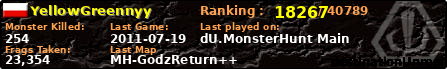 ![]() | MH-GodzReturn++ | 2011-07-19 19:51:10 | 1,186 | 93527 | 25 | 20 | 0 | 1 | 9,01km | 01:17:58 |