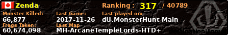 Zenda | | PlayerID: | 5617 | | Overall MHT: | 60,674,098 | | Overall Deaths: | 2169 | | Overall Suicides: | 58 | | Overall TeamKills: | 47 | | Overall Distance traveled: | 3,096km | | Overall Time Spend on Server: | 11days 09h 25m 09s | | Maps Played: | 1020 | | Firstgame: | 2011-08-05 02:03:38 | | LastGame: | 2017-11-26 17:05:15 | | Player Ranking Place: | 317 | | Used Playernames: | Zenda Queen_of_the_Pulse Secret2