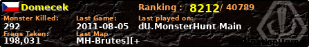 | Server | Map | LastGame | Score | Teamscore | Monsterleft | Deaths | Suicides | TKs | Distance | Playtime | |
