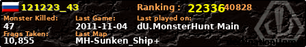 | Server | Map | LastGame | Score | Teamscore | Monsterleft | Deaths | Suicides | TKs | Distance | Playtime | |