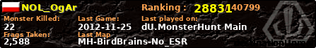 | Server | Map | LastGame | Score | Teamscore | Monsterleft | Deaths | Suicides | TKs | Distance | Playtime | |