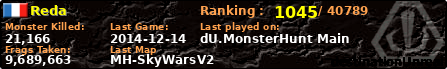 Reda | | PlayerID: | 8930 | | Overall MHT: | 9,689,663 | | Overall Deaths: | 578 | | Overall Suicides: | 0 | | Overall TeamKills: | 2 | | Overall Distance traveled: | 951km | | Overall Time Spend on Server: | 02days 17h 59m 32s | | Maps Played: | 155 | | Firstgame: | 2012-03-20 21:42:58 | | LastGame: | 2014-12-14 19:39:17 | | Player Ranking Place: | 1045 | | Used Playernames: | Reda putagaz