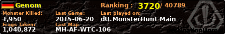 Genom | | PlayerID: | 9404 | | Overall MHT: | 1,040,872 | | Overall Deaths: | 164 | | Overall Suicides: | 1 | | Overall TeamKills: | 2 | | Overall Distance traveled: | 132km | | Overall Time Spend on Server: | 00days 11h 44m 50s | | Maps Played: | 85 | | Firstgame: | 2012-05-06 15:54:10 | | LastGame: | 2015-06-20 19:58:28 | | Player Ranking Place: | 3720 | | Used Playernames: | Genom