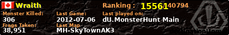| Server | Map | LastGame | Score | Teamscore | Monsterleft | Deaths | Suicides | TKs | Distance | Playtime | |