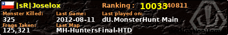 |sR|Joselox | | PlayerID: | 10275 | | Overall MHT: | 125,321 | | Overall Deaths: | 145 | | Overall Suicides: | 15 | | Overall TeamKills: | 3 | | Overall Distance traveled: | 72km | | Overall Time Spend on Server: | 00days 05h 03m 29s | | Maps Played: | 25 | | Firstgame: | 2012-07-19 04:14:13 | | LastGame: | 2012-08-11 05:55:16 | | Player Ranking Place: | 10033 | | Used Playernames: | |sR|Joselox