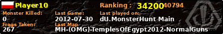 | Server | Map | LastGame | Score | Teamscore | Monsterleft | Deaths | Suicides | TKs | Distance | Playtime | |