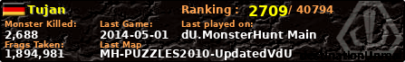 Tujan | | PlayerID: | 10760 | | Overall MHT: | 1,894,981 | | Overall Deaths: | 169 | | Overall Suicides: | 20 | | Overall TeamKills: | 4 | | Overall Distance traveled: | 192km | | Overall Time Spend on Server: | 00days 15h 42m 59s | | Maps Played: | 50 | | Firstgame: | 2012-08-19 20:46:45 | | LastGame: | 2014-05-01 10:00:23 | | Player Ranking Place: | 2709 | | Used Playernames: | Tujan Kochplatte CTF-Coret
