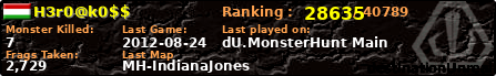 | Server | Map | LastGame | Score | Teamscore | Monsterleft | Deaths | Suicides | TKs | Distance | Playtime | |
