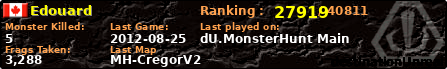 | Server | Map | LastGame | Score | Teamscore | Monsterleft | Deaths | Suicides | TKs | Distance | Playtime | |