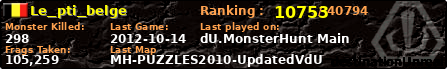 | Server | Map | LastGame | Score | Teamscore | Monsterleft | Deaths | Suicides | TKs | Distance | Playtime | |