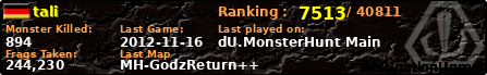 | Server | Map | LastGame | Score | Teamscore | Monsterleft | Deaths | Suicides | TKs | Distance | Playtime | |