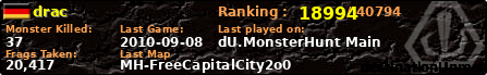 | Server | Map | LastGame | Score | Teamscore | Monsterleft | Deaths | Suicides | TKs | Distance | Playtime | |