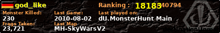 | Server | Map | LastGame | Score | Teamscore | Monsterleft | Deaths | Suicides | TKs | Distance | Playtime | |
