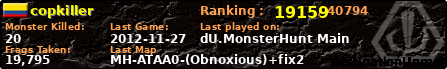 | Server | Map | LastGame | Score | Teamscore | Monsterleft | Deaths | Suicides | TKs | Distance | Playtime | |
