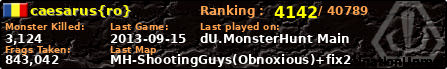 caesarus{ro} | | PlayerID: | 11939 | | Overall MHT: | 843,042 | | Overall Deaths: | 482 | | Overall Suicides: | 1 | | Overall TeamKills: | 5 | | Overall Distance traveled: | 294km | | Overall Time Spend on Server: | 00days 22h 52m 13s | | Maps Played: | 72 | | Firstgame: | 2012-11-24 23:50:22 | | LastGame: | 2013-09-15 00:29:06 | | Player Ranking Place: | 4142 | | Used Playernames: | caesarus{ro}