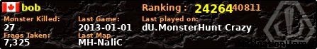 | Server | Map | LastGame | Score | Teamscore | Monsterleft | Deaths | Suicides | TKs | Distance | Playtime | |