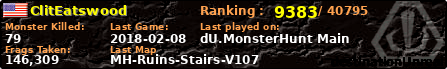 | Server | Map | LastGame | Score | Teamscore | Monsterleft | Deaths | Suicides | TKs | Distance | Playtime | |