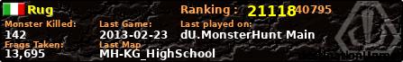 ![]() | MH-SkyBlueFound_2 | 2013-02-23 20:18:12 | 1,316 | 320430 | 90 | 4 | 0 | 0 | 0,50km | 00:12:41 |