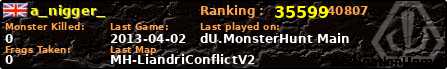 | Server | Map | LastGame | Score | Teamscore | Monsterleft | Deaths | Suicides | TKs | Distance | Playtime | |